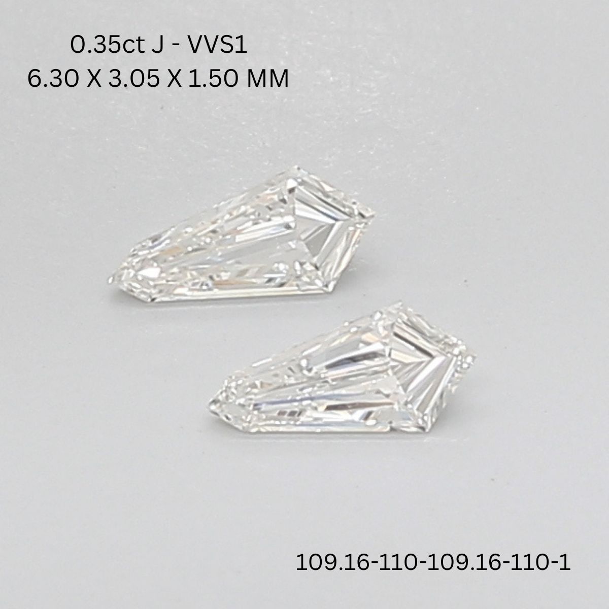 0.18 CT J VVS1 SHIELD diamond Pairs InventoryTotal Weight: 0.18 Ct