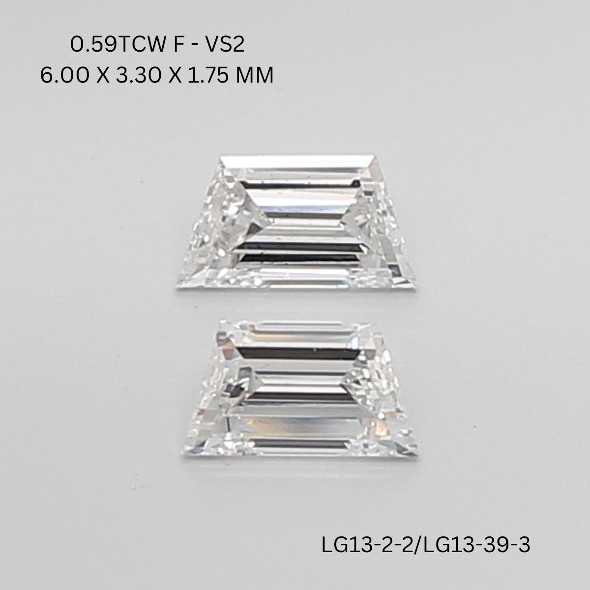 0.59 CT F VS2 TRAPEZOID diamond Pairs Inventory
