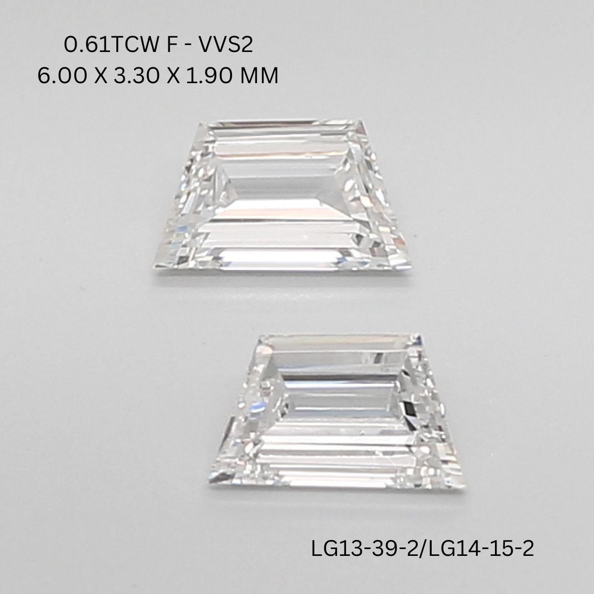 0.61 CT F VVS2 TRAPEZOID diamond Pairs Inventory Total Weight: 0.61 Ct