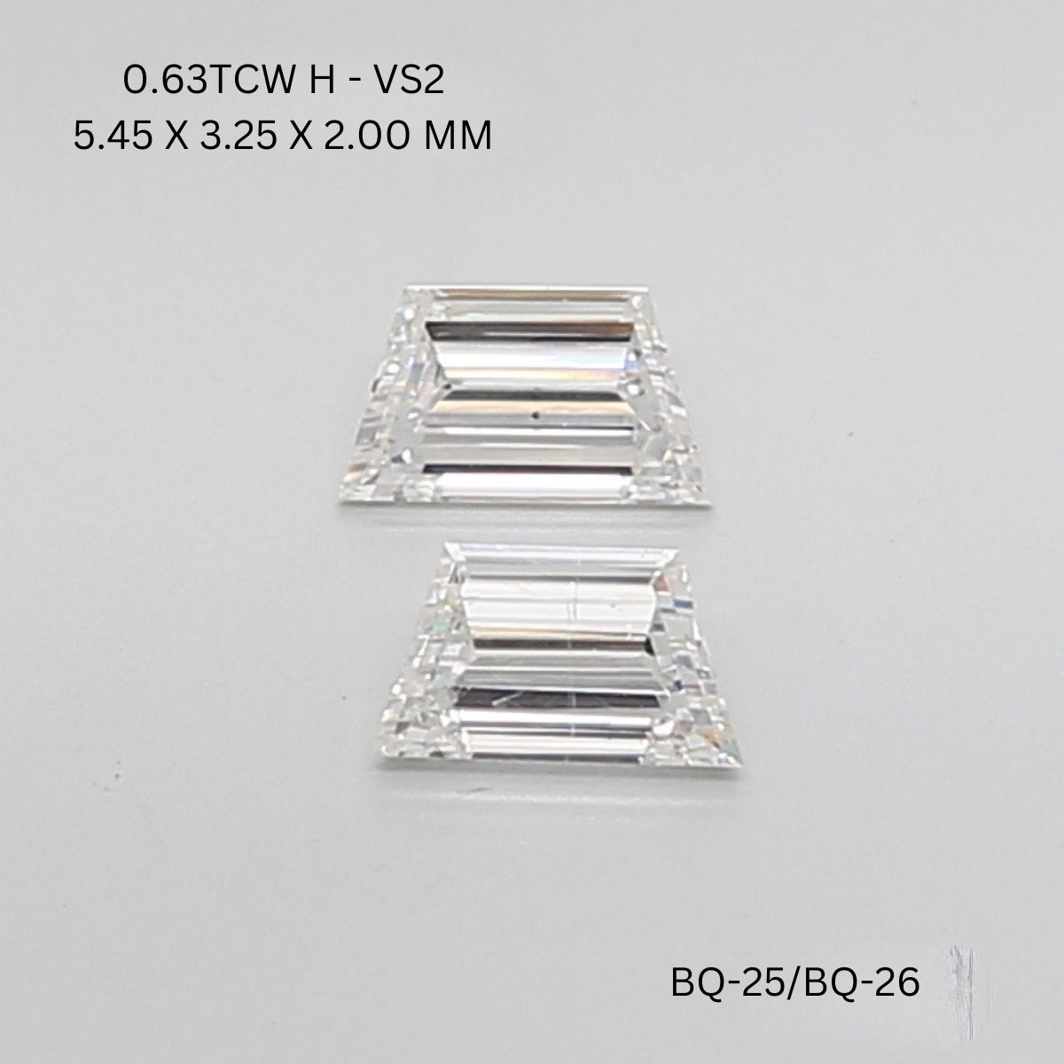 0.63 CT H VS2 TRAPEZOID diamond Pairs Inventory Total Weight: 0.63 Ct