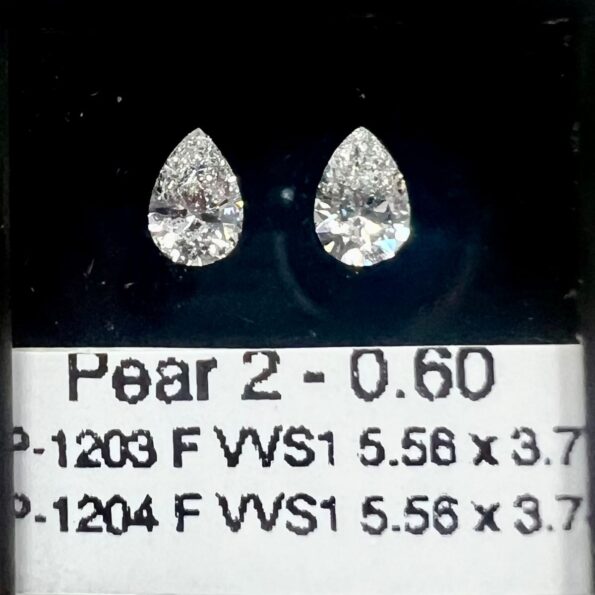 0.6ct Pear diamond with F color and VVS1 clarity. Measures 5.56×3.77×2.3mm – luxury quality for heirloom jewelry. Heirloom-Quality Pear Diamond