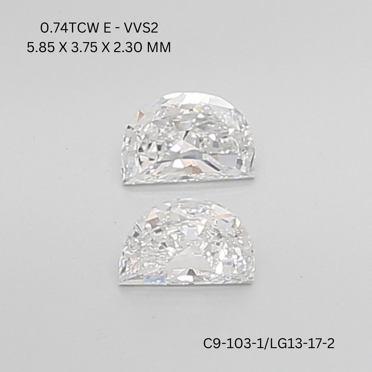 0.74 CT E VVS2 HALF MOON diamond Pairs Inventory Total Weight: 0.74 Ct