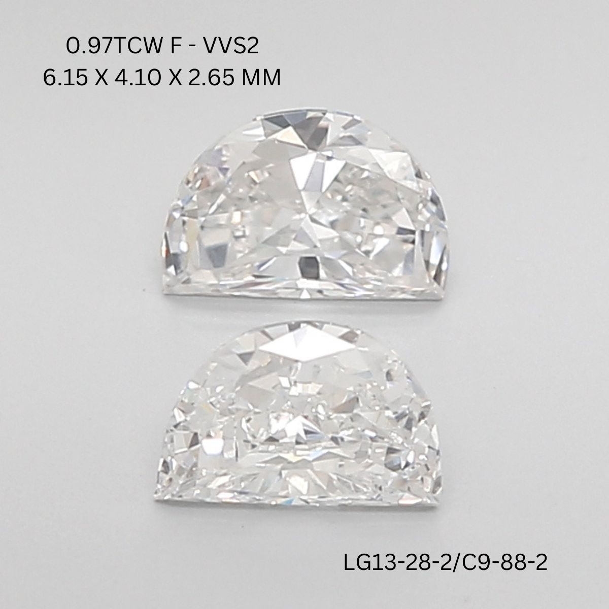 0.97 CT F VVS2 HALF MOON diamond Pairs Inventory