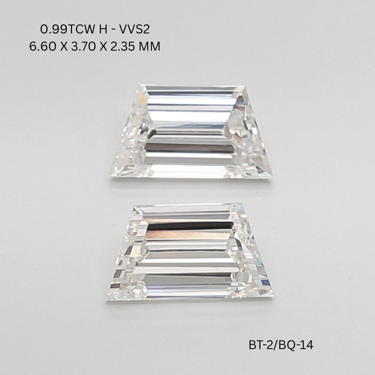 0.99 CT H VVS2 TRAPEZOID diamond Pairs Inventory Total Weight: 0.99 Ct