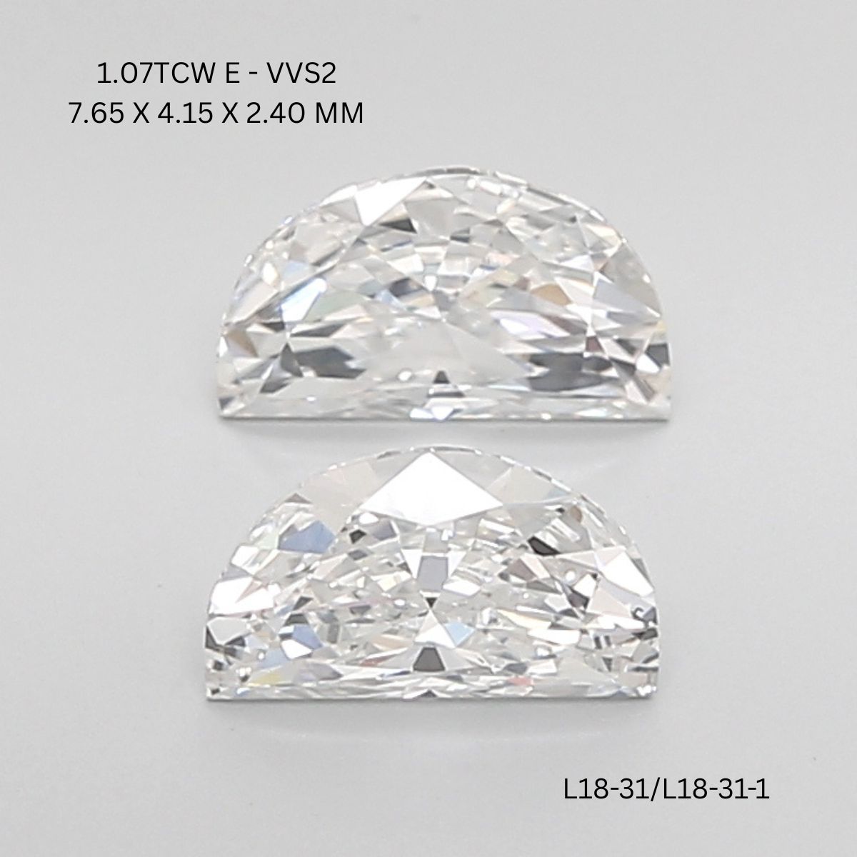 1.07 CT E VVS2 HALF MOON diamond Pairs Inventory Total Weight: 1.07 Ct