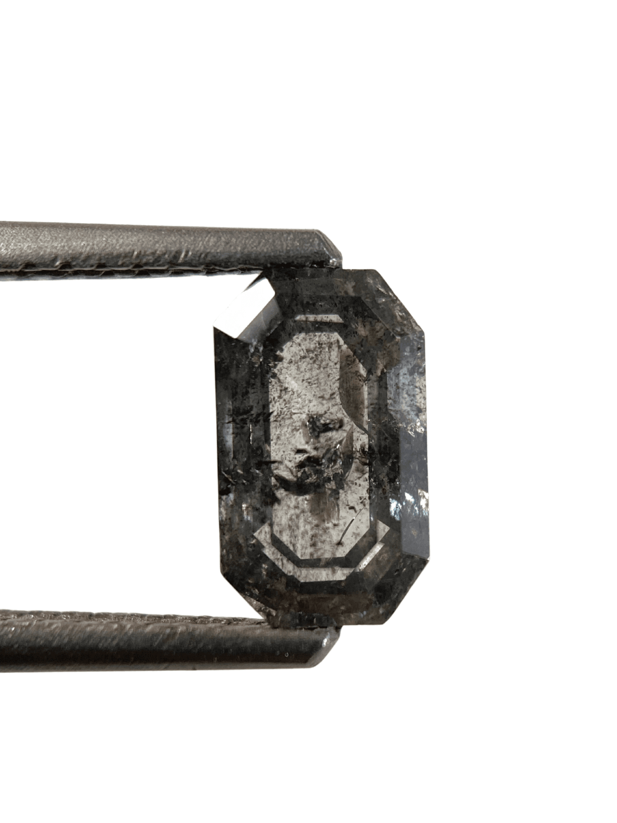 1.29Ct Salt And Pepper Diamond Emerald Shape Diamond Black Color Diamond Omimportsinc Om OM35