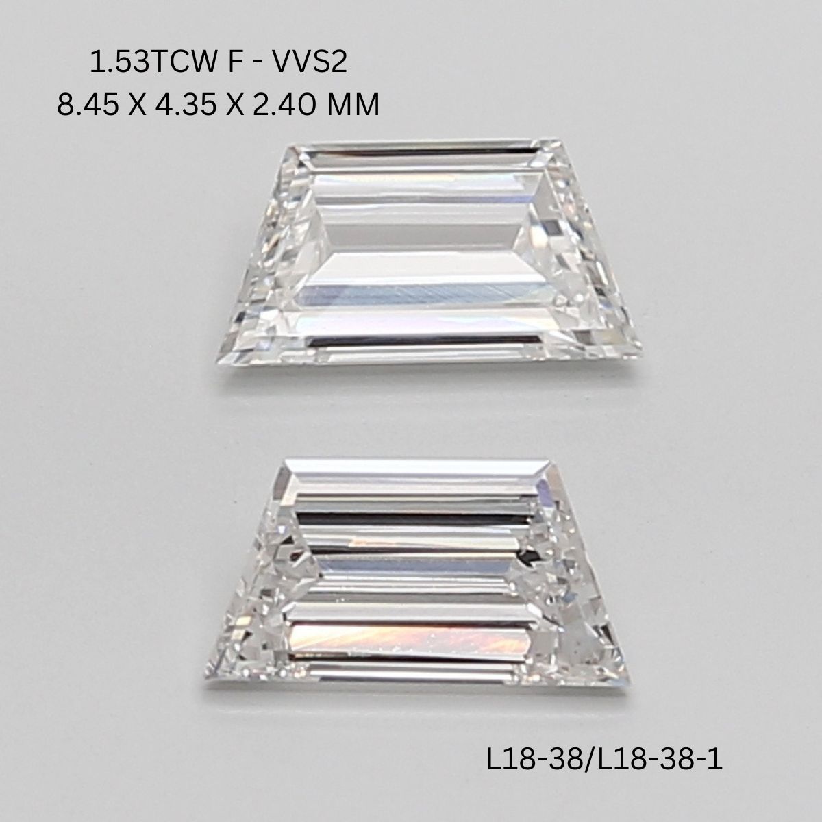 1.53 CT F VVS2 TRAPEZOID diamond Pairs Inventory Total Weight: 1.53 Ct
