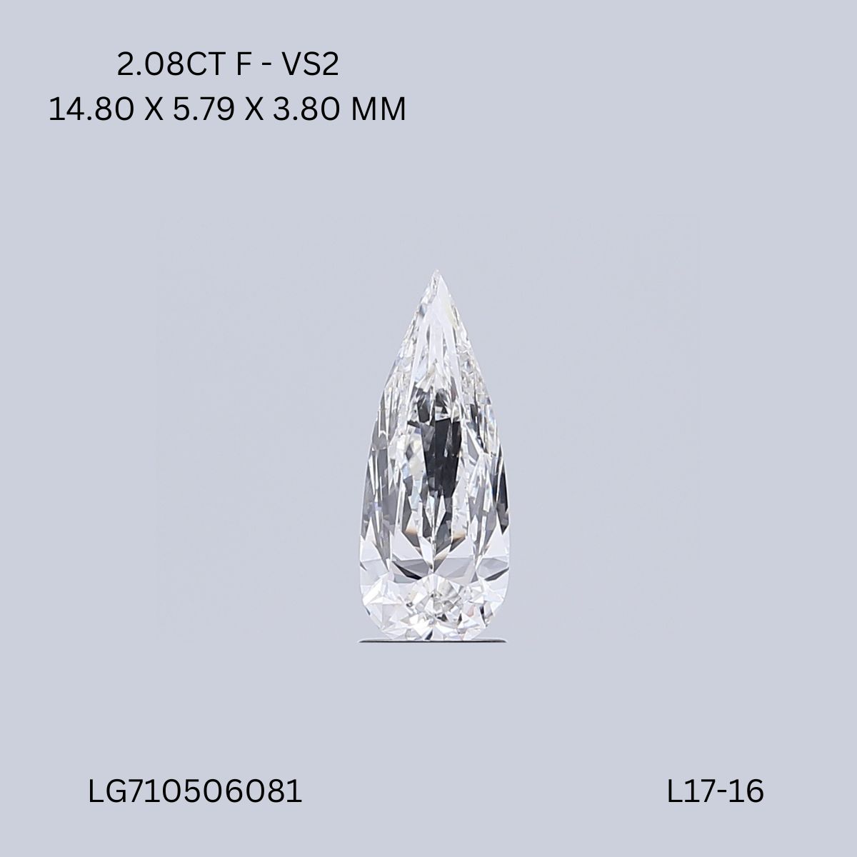 2.08 CT F VS2 PEAR diamond Fancy ShapeTotal Weight: 2.08 Ct